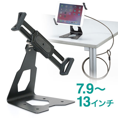 セキュリティワイヤー付きのスタンドで、7.9〜13インチまでに対応しています。